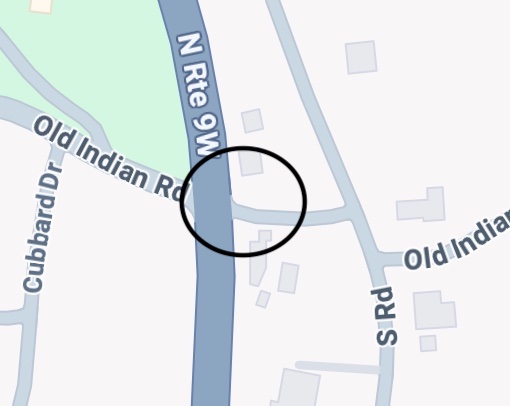 Genevieve was in the left-hand southbound lane of Route 9W waiting to make a left onto Old Indian Road. As she waited, a tow truck carrying an SUV was traveling southbound in the left lane of 9W behind her.