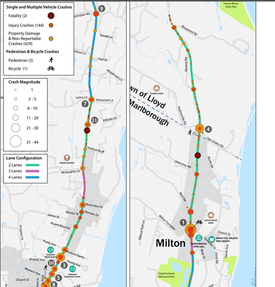 In 2018, the towns of Marlborough and Lloyd commissioned a lengthy and comprehensive Route 9W Corridor Management Plan. This document outlines dozens of recommendations to improve travel conditions on Route 9W.